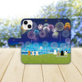 iPhone専用 手帳型スマホケース 【内側色:ホワイト仕様】カメラ穴有【ほのぼのにゃんこ(花火)】