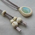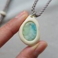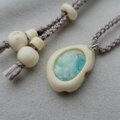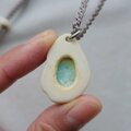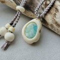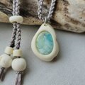 鹿の角の土台にウッドオパール(コモンオパール)を埋め込んだペンダントです。