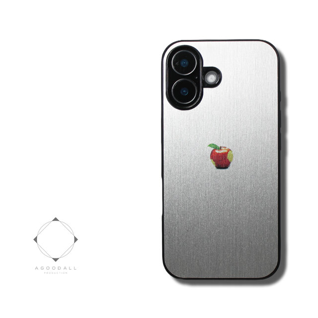 【まるで金属のようなiPhoneケース・MagSafe対応モデル】(シルバー)赤リンゴ 耐衝撃 12/13/14/15/16~