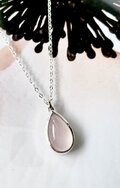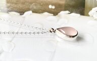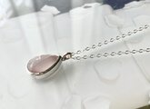 このペンダントは、柔らかなピンク色のローズクォーツを使用し、シンプルでありながらエレガントなデザインに仕上げました。