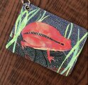 アカトマトガエルのアケルだよ。ドジだけど、ペンはちゃんと届けたんだ!森の仲間と一緒にドキドキ冒険するボクの姿を、このパスケースに描いてあるんだよ。