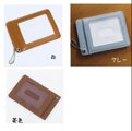 SuicaやICカードがすっぽり入って、背面には透明ポケット付き。しっかりした合皮素材だから、毎日のおでかけにも安心して使えるんだ。