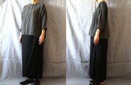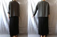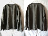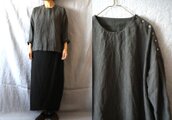 【受注制作】濃チャコールグレー/天日干し40リネン きっちりクルー肩開きゆるり長袖プル