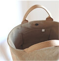 作品が到着いたしました。 優しいラテグレージュ色と細いレザーハンドルが、とても上品でフェミニンな印象の素敵なバッグですね。 季節を問わず活躍してくれる事間違いありません。ありがとうございました。
