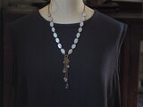 月の光を帯びたようなシルバーグレーのフラットなパールと透明度の高い美しいクリスタル(水晶)でネックレスを作りました。まるでアルテミスからのメッセージのような気がしてなりません。