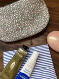 メイク道具などを持ち運ぶのに、ちょうどいいサイズです。リップやコスメが出し入れしやすい、シンプルな作りです。