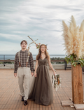 実例写真!パーティードレス Vネック コーヒーの色 キャミソール リボン バックレス カラードレス 前撮り