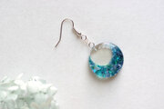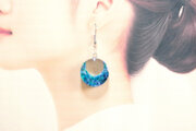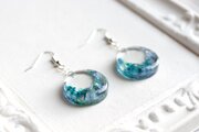 青いお花の花びらを敷き詰め、ブルーのラメを乗せたピアス。
