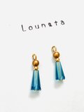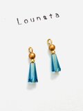 チェコビーズピアス ゴールドとブルーガラスビーズの小ぶりピアス 一年中使えるピアス 夏ピアス