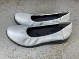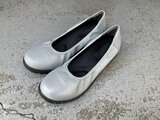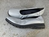 毎日の歩行を快適にする、スタイリッシュなシルバーグレーのフラットシューズ。