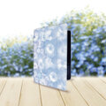 ブルーのお花(ネモフィラ)をモチーフにした優しく淡いブルー配色のiPad手帳型タブレットケースです。