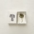 種子のコサージュは初めてです。 ブルーの軽やかな美しさがより一層引き立つようです。 微妙に色が違う小さなひまわりたちが愛らしいです。