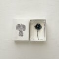 種子のコサージュは初めてです。 ブルーの軽やかな美しさがより一層引き立つようです。 微妙に色が違う小さなひまわりたちが愛らしいです。