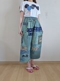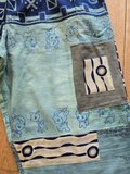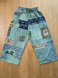 かすりのパッチワークが とっても丁寧で 美しく 色とりどりの生地も素敵にコラボ! 刺し子も 綺麗なラインで 美しい。 生地を 惜しげなく贅沢に使って 普通のパンツだと 2枚は 十分取れそう。 ワンピースにすれば とっても素敵になりそう。 プチプレゼントも 可愛い。