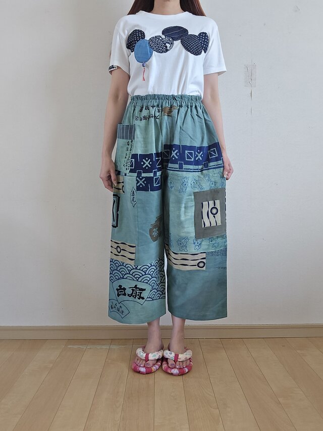 染めた手ぬぐいをリメイクしてパンツを作りました。