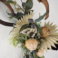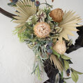 アーティフィシャルフラワーとドライ素材を組み合わせ、自然の美しさを表現。