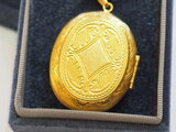 ゴールドにヨーロッパの冬景色が入ったラウンド型のロケットペンダントです。