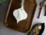 アンティークのボタニカル画から切り取ったような、シダ植物の葉をアロマストーンに仕立てました。ベースはアラベスクのような神秘的なタイル状で遠目から見ても神秘的で視線を集めます。