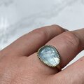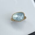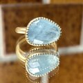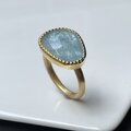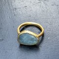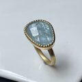 アクアマリン ラフチェッカーカット 丸っぽい変形三角 ミル シルバーSV925リング