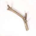 流木の上部と下部の枝の間には、木の表皮が楕円に裂けて 下の層が出ている部分があり、その中央にはひび割れが見られます。