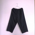 濃紺地に水色で細かい蚊絣が織り出された良い大島です。夏の大島と言われるようにさらりとした軽い感じがこれからの季節に重宝しそうなものです。いわゆるガウチョパンツより細身に仕立ててあります。ほぼ状態の良いものですがお尻の方に2カ所、スレがありましたので後ろから当て布をしてミシンで補強してあります。一カ所はポケットになっているので外からはわかりません。その点をご了承頂ける方にお願いいたします。