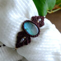 見る角度や光の角度で、オーロラのようにブルーグリーンに輝くシラー(ラブラドレッセンス)が石の表面に力強く艶やかに輝く美しいマダガスカル産ラブラドライトのマクラメ編みブレスレットです。やや大きめサイズで良質なラブラドライトをセレクトしました。力強く存在感のある個性的なブレスレットに仕上げました。