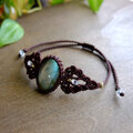 ラブラドライト(マダガスカル産) マクラメ編みブレスレット 男女兼用可 天然石アクセサリー ・誕生日プレゼントギフト 3483