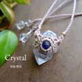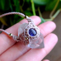 水晶ポイント原石(ブラジル産)・アイオライト(3月誕生石)マクラメ編みペンダントネックレス 男女兼用可アクセサリー 3136