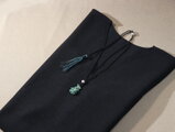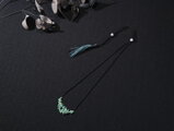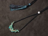 アネモネカラー・天然石と絹のネックレスパールの位置によって、長さはもちろんトップの形を変えられるのがユニークで変化が楽しめて嬉しいです。 以前ネックレスを落としてしまったことがあるので、被り式のネックレスは安心して身につけられて助かります。 ネック部分やタッセルがシルクで、汗ばむ季節にも肌あたりが柔らかそうで嬉しいです。トップに合わせたタッセルの色合いも好きです。 素敵な作品をありがとうございました!