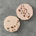 優しいカラーのベースに天然石を散りばめた、ひとつひとつ異なる表情を楽しめる一点ものです。