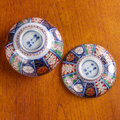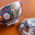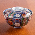 金彩や色絵の華やかさが目を惹く蓋茶碗です。