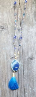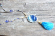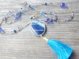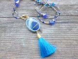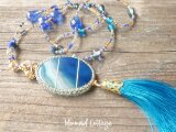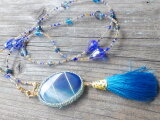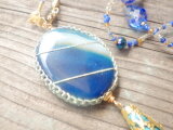 とまるで海!な大きなアゲート(瑪瑙)をトップにしたちょっとボヘミアン?なロングネックレスです