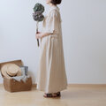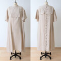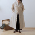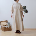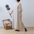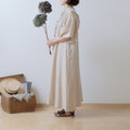 ヨークレイヤーフレアハーフスリーブリネンワンピース/ベージュ