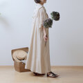 スクエア型のヨークデザインがポイントになった、リネンのAラインワンピースです