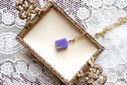 紫のレジンにお花を三輪あしらった、シンプルながらも可憐なペンダント。
