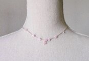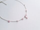小さな花の形をした 柔らかなピンク色のガラスビーズを繋いで作った、可憐なネックレスです。