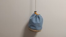 ハーフリネンのブルーのチェック生地で巾着を作りました。