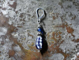 アンティークヴェネチア瑠璃色アラベスクとシルバービーズ、ブルービーズの片耳ピアス