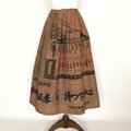 柿渋で染色した年代物の手ぬぐいをタックスカートにリメイクしました。