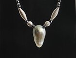 パール好きなクールで賢いメンバーが普段使いできる。をコンセプトにバロックパールを気軽に楽しめるネックレスを作りました。モノトーンとコイルスプリングのパーツがメンズっぽくもあり、フェミニンなパールの柔らかさと対比して面白いデザイン構成になりました。