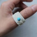 こちらは【鹿の角 キングマンターコイズのフェザーリング】になります。