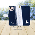 iPhone専用 手帳型スマホケース (カメラ穴あり/はめ込み式/スタンド機能付き)【アイラブ・チワワ(ネイビー)】