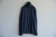 リネンニット 2重長袖タートルネックプルオーバー(ダークネイビー)メンズ|2サイズ