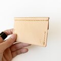 革 レザー 手縫い 手作り ハンドメイド 日本 職人 作家 レザークラフト ハンドクラフト 手仕事 革細工 革小物 ギフト プレゼント 誕生日 記念日 クリスマス 新年 バレンタインデー ホワイトデー 新生活 シンプル ミニマム ナチュラル 軽い 金具なし カードケース キャッシュレス クレジットカード ICカード 定期 仕切り 薄い ベージュ きなり