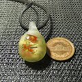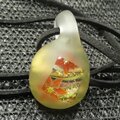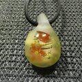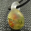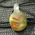 赤ユリ二輪、金箔ぼかし(ガラス、とんぼ玉、ユリ、一点物、伝統工芸、ネックレス)