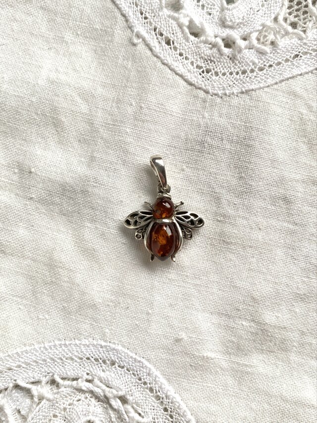 小さなシルバーと、バルト海産のミツバチのチャーム。