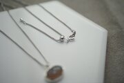 ネックレスは45㌢までスライドアジャスターで長さの調節がスムーズな仕上げ。