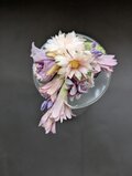 柔らかい紫色を含ませたばら、小花たちを集めたブローチです。