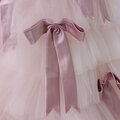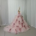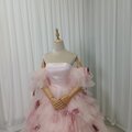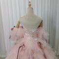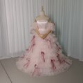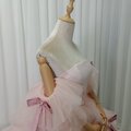 美品!カラードレス ピンク ベアトップ フリル袖 ボリュームドレス リボン 編み上げ 前撮り
