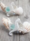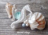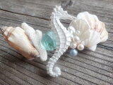 本物のシェルや珊瑚やタツノオトシゴのモチーフで人魚の佇む浜辺世界を表現しました